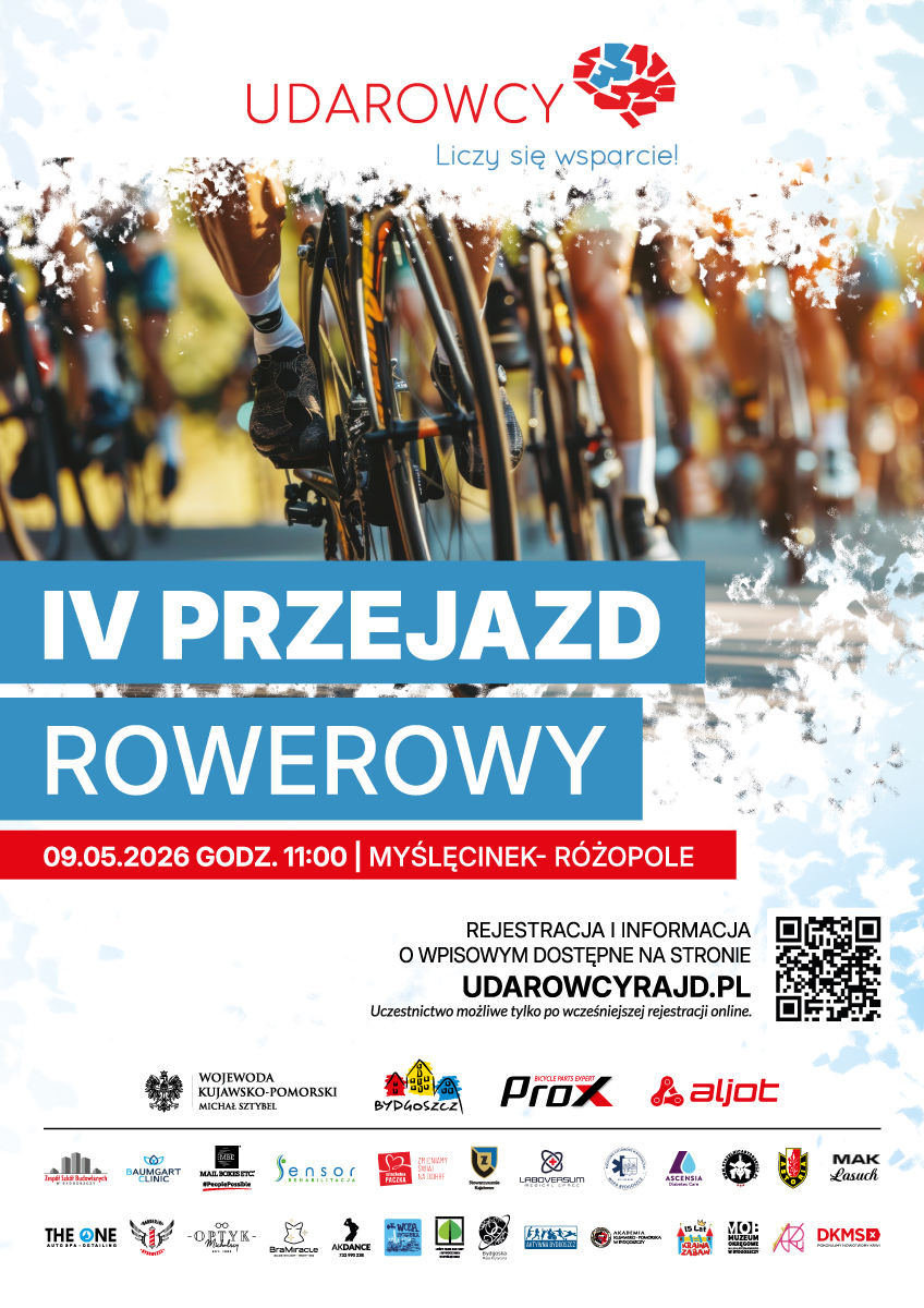 Poraz czwarty Stowarzyszenie Udarowcy – liczy się wsparcie zaprasza na Przejazd Rowerowy. Widzimy się 9 maja 2026 r. Myślęcinek- Różopole. Do zobaczenia