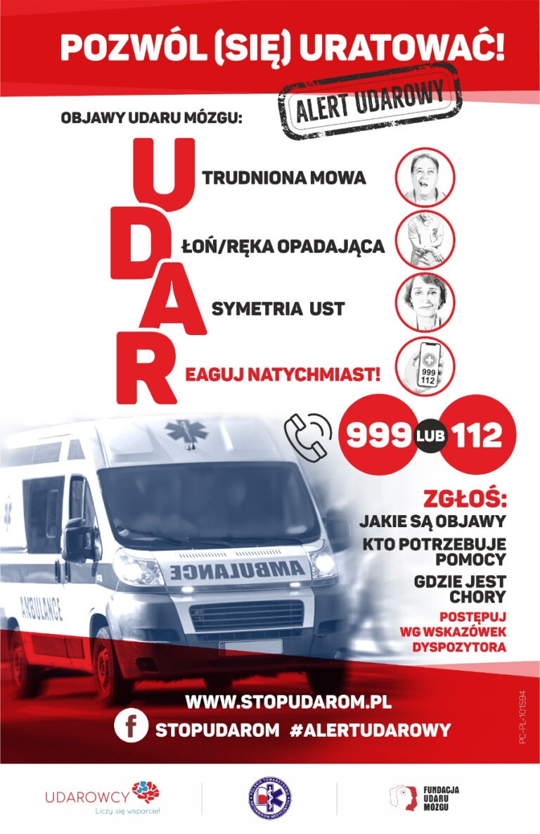 29 października jest Światowy Dzień Udaru Mózgu. Z tej okazji w ramach kampanii Stop Udarom, której jesteśmy partnerem, ogłaszamy „ALERT UDAROWY” i zachęcamy wszystkich by zapamiętali podstawowe objawy udaru mózgu, dzięki prostemu rozwinięciu akronimu słowa UDAR: U – utrudniona mowa,…
